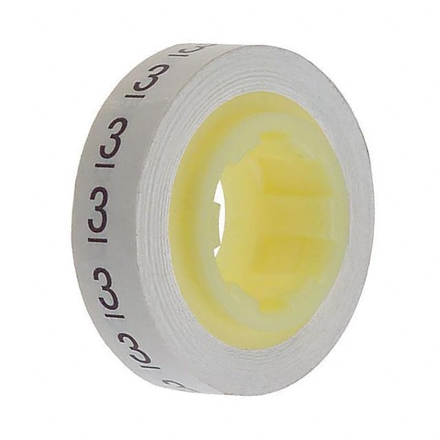 The 054007-09372 is a wire marker tape refill roll SDR. The tape features a high tack, acrylic adhesive that resists solvents, oil and water and adheres firmly to insulation surfaces. Printed text: "3". Operating temperature range is -40°F (-40°C) to 250°F (121°C). Color of the tape is white. Dimensions of the tape are 5.5mm(W)x2.4m(L).