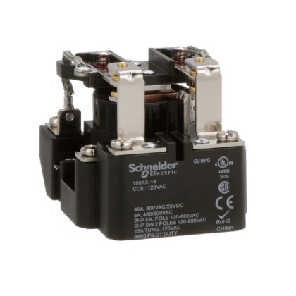 Power Relay - DPDT - open cover type - screw terminal - 40A - 120V AC - 2 C/O