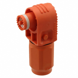 Amphenol I/OSurLok Plus® Gen 1.0 1000V DC Right Angle Plug - 10.3mm Contact Dia. - 300A - 85mm² Cable Size - 90° Keyway - Sealed - Cable Mount - Orange. ...