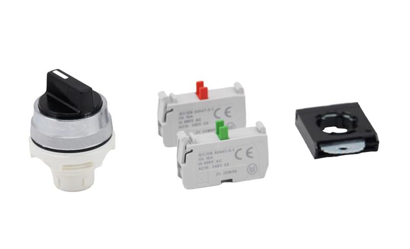 30mm Black 2 Pos Maint Sel Sw Chrome Bezel w/ 1 NO 1 NC, 3 Pos Clip