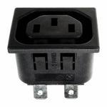 IEC Connector Snap Fit To Panel Outlet PX0695 Series 1.5mm Panel Black 2.8mm Solder Tag Termination EN60 320-2-2 Standard Sheet F Class I
