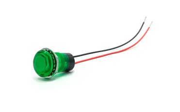 The 657-1504-103F is a red LED panel mount indicator from the 657 Watertight Series. It is designed to operate on a 24 VDC supply, drawing 20 mA of current and producing a typical luminous intensity of 650 mcd. This indicator features a durable polycarbonate housing and a flat, tinted diffused lens, ensuring reliability in harsh conditions with IP67 and NEMA 4X ratings. It operates over a temperature range of -35°C to +65°C and comes with 6-inch, 18 AWG wire leads for electrical connection. Its robust, watertight construction makes it ideal for industrial control panels, heavy-duty vehicles, marine equipment, and other demanding applications.