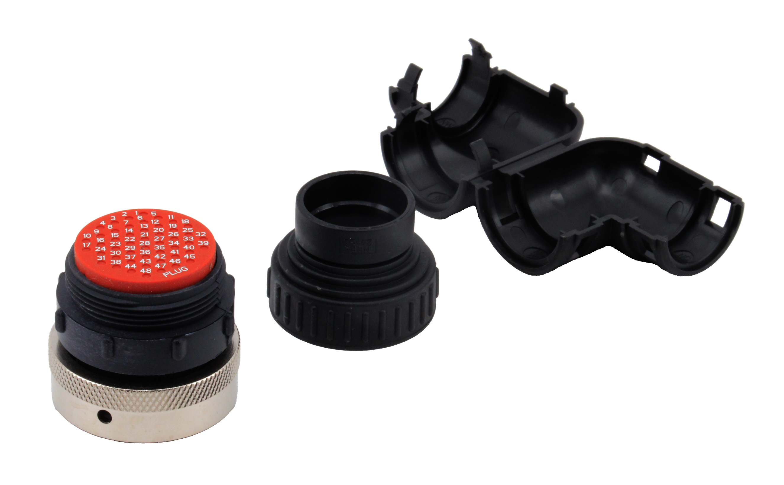 The 192900-0640 includes 1 backshell, 3 clamp bars and 2 screws. For use with discrete wires or jacketed cables.