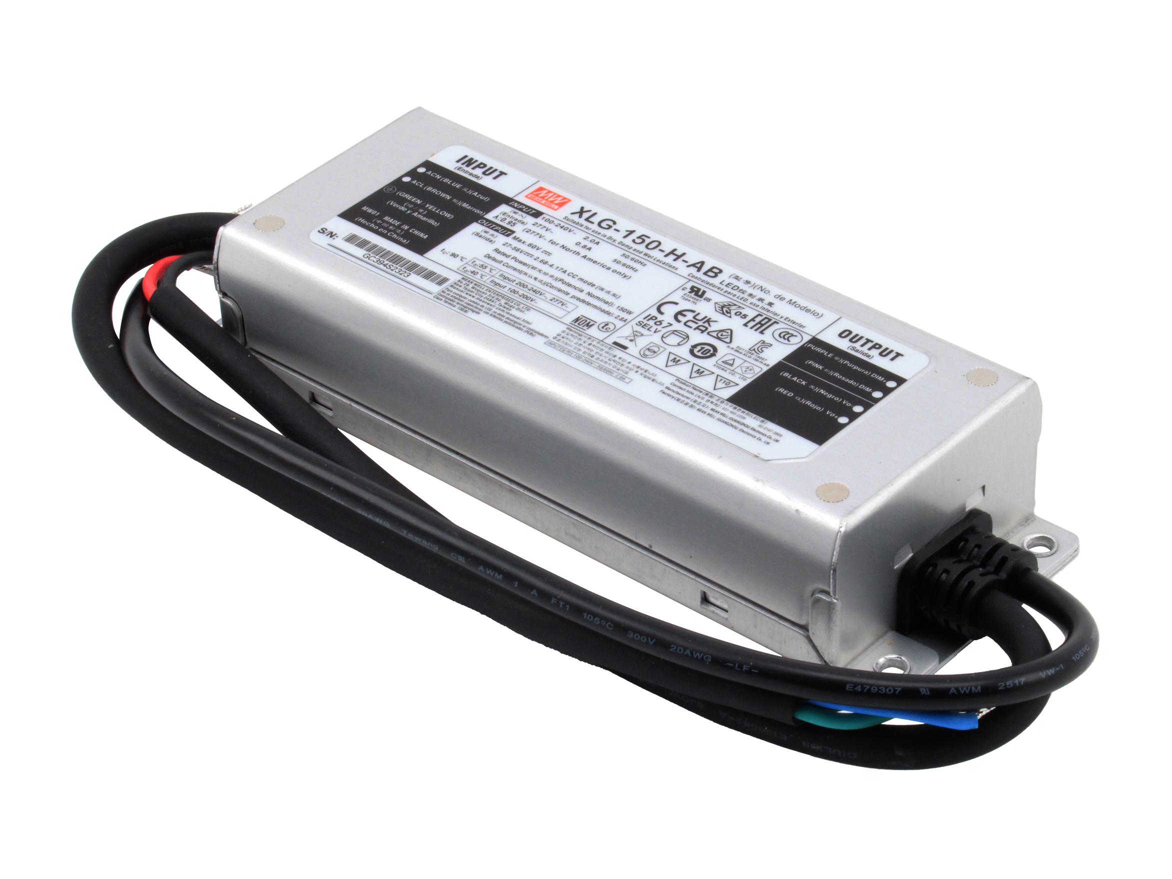 Mean WellAC/DC LED Power Supply - Const Curr/Volt - 150W - Adj: 24 Vdc @ 6,250mA - Dim: No ...