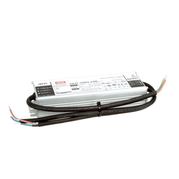 The HLG-120H-24B is a 120W AC/DC LED driver featuring a dual mode constant voltage and constant current output. HLG-120H-24B operates from 90 to 305VAC. Voltage output is 24 VDC and constant output current region from 12-24VDC with rated current of 5A. Thanks to the high efficiency up to 93%,with the fanless design, it is able to operate from -40℃ ~ +80℃ case temperature under free air convection. The design of metal housing and IP67/IP65 ingress protection level allows this series to fit both indoor and outdoor applications. HLG-100H-36B is equipped with various function options, such as dimming methodologies, so as to provide the optimal design flexibility for LED lighting system. The HLG-120H-24B has a typical lifetime of 62000 hours and a 7-year factory warranty.
