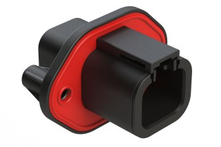 2-Way Plug Female Connector with Strain Relief Endcap, Standard Seal, Black