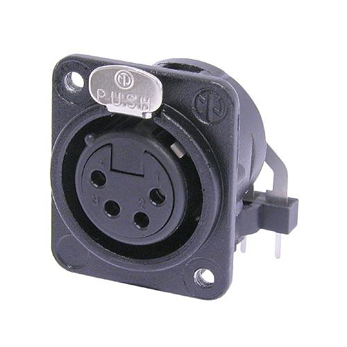 The NC4MX-BAG is 4 pole male cable connector with black metal housing and silver contacts. The NC4MX-BAG has rated voltage of < 50 V and rated current per contact of 10 A and dielectric strength of 1,5 kVdc . The "industry standard" XLR cable connector, easy to assemble with only 4 parts and no screws. Compact design with sturdy diecast shell, fibreglass reinforced hard plastic insert and chuck type strain relief for secure clamping of all cables.