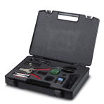 Phoenix ContactHCS assembly kit for SC-RJ quick mounting connectors, including stripping blade, stripping pliers, aramide yarn scissors, fiber stripper, microscope, fiber cleaving tool for standard HCS and HCS GI fibers, two SC-RJ connectors for standard HCS fiber, and documentation ...