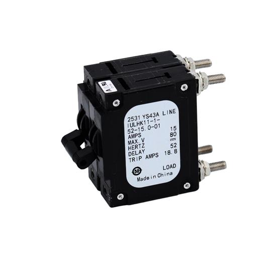 The AP17-1-51-702 is 2 pole circuit breaker, two of the basic units are combined in a sealed case to provide protection for dual circuit. A single toggle handle actuates both internal trip mechanisms. Conversely, an overload in either circuit trips both simultaneously.