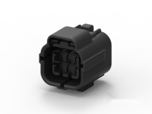 The 174264-2 is a 6-position, black pin (cap) housing from the Econoseal J Series. It is constructed from PBT material and is designed to accept a wire size range of 0.20-1.25 mm² (24-16 AWG). This sealed housing provides robust protection for electrical contacts and is designed to mate with the 174262-2 socket housing, utilizing a separate pin lock plate. As part of the Econoseal series, it is ideal for automotive applications requiring waterproof and rugged construction, such as wiring for sensors in engine compartments or connections to control systems in harsh environments.