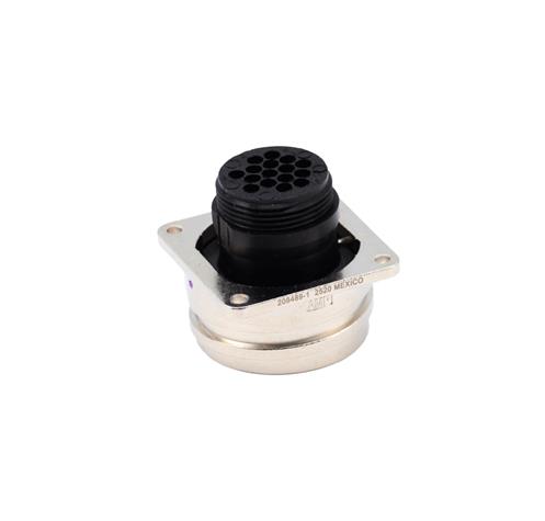 The 208488-1 is a 16-way Free-hanging Plug with threaded coupling mate. This series 1 metal-shell circular plastic connector comes with nickel-plated zinc alloy shell and black thermoplastic housing.