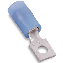 The RC484 is a rectangular ring terminal insulated with high dielectric-strength nylon for wire range #12 - #10 AWG. Serrated barrel increases grip on wire. Length 1.125 inches, .237 inches width, bolt hole #6. The terminal is high-conductivity electrolytic copper, electro-tin plated, with color-coded insulation. Recommended tools WT145C, ERG2001, WT145A or WT2000.